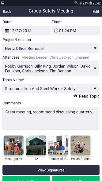 • Group Safety Meetings --- Frequent safety meetings is the OSHA law. We make it easy to meet with your crew and collect their individual signatures for easy documentation.